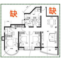 房屋缺角是户型风水一个典型的问题,户型分为乾砍艮震巽离坤兑八个方位,缺哪个卦位,对哪个卦位的人就有不利的影响。比如缺东北角艮卦少男位,对孩子成长不利,容易出现成绩不佳,健康不适等问题;